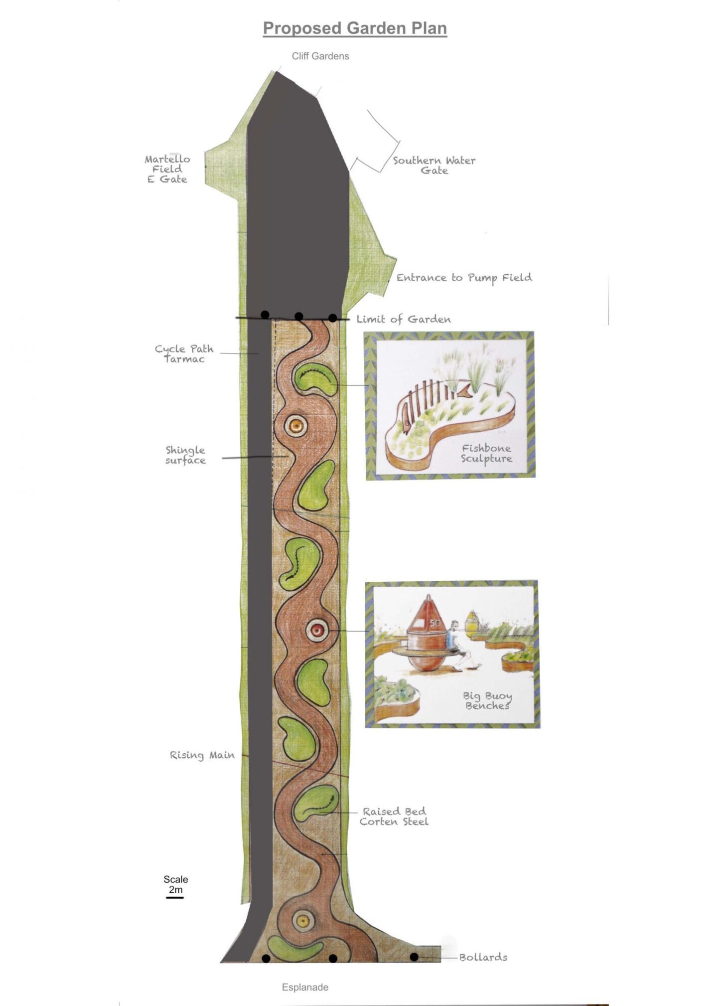 Planning Permission: Plans for the garden were submitted by Seaford Community Partnership to Lewes District Council in December 2022. As is customary, Lewes District Council put a notice on local posts and informed residents in the area of the development. Plans were available at Lewes District Council offices for inspection and online on their Planning Portal click here to view.